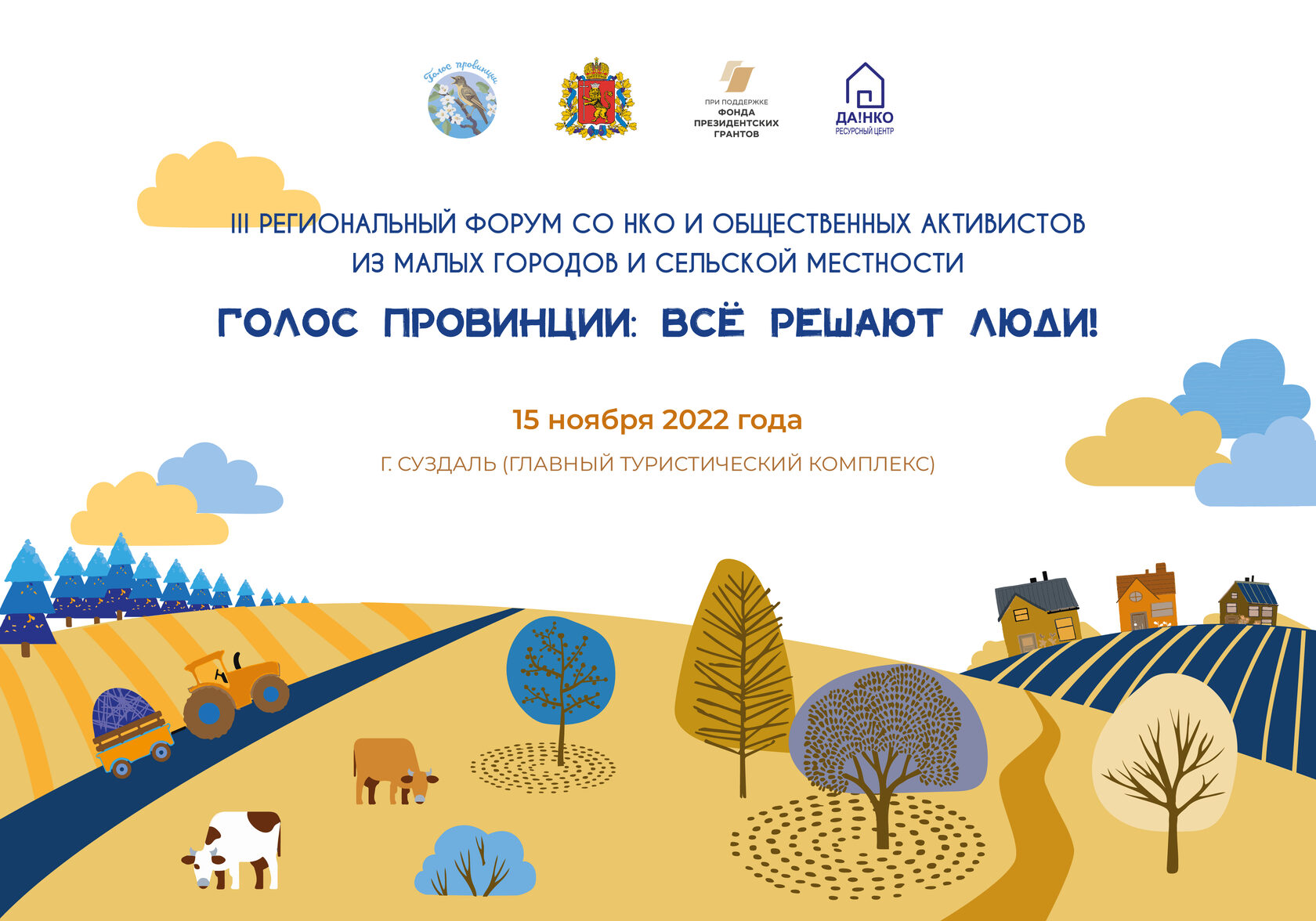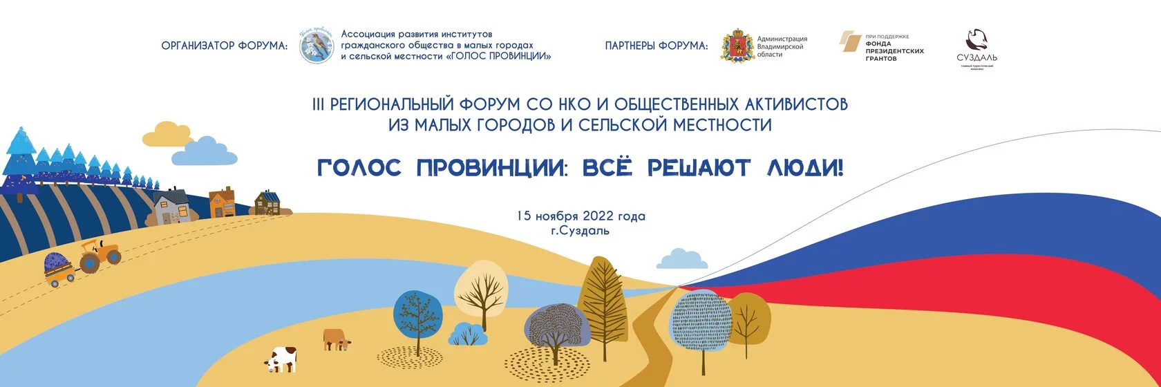 15 ноября 2022 года в Суздале прошел III Третий региональный форум СО НКО и общественных активистов из малых городов и сельской местности «Голос провинции: всё решают люди!»