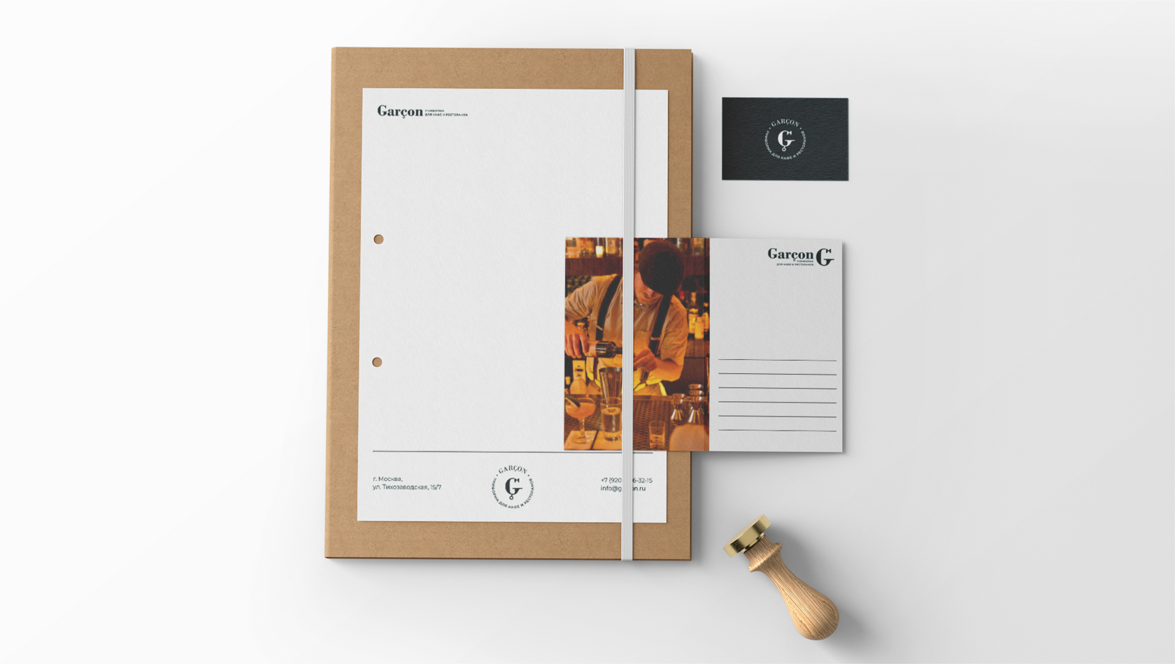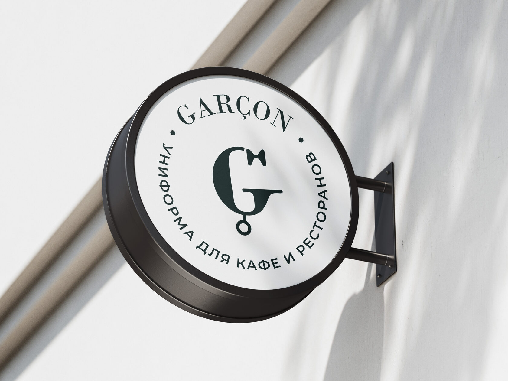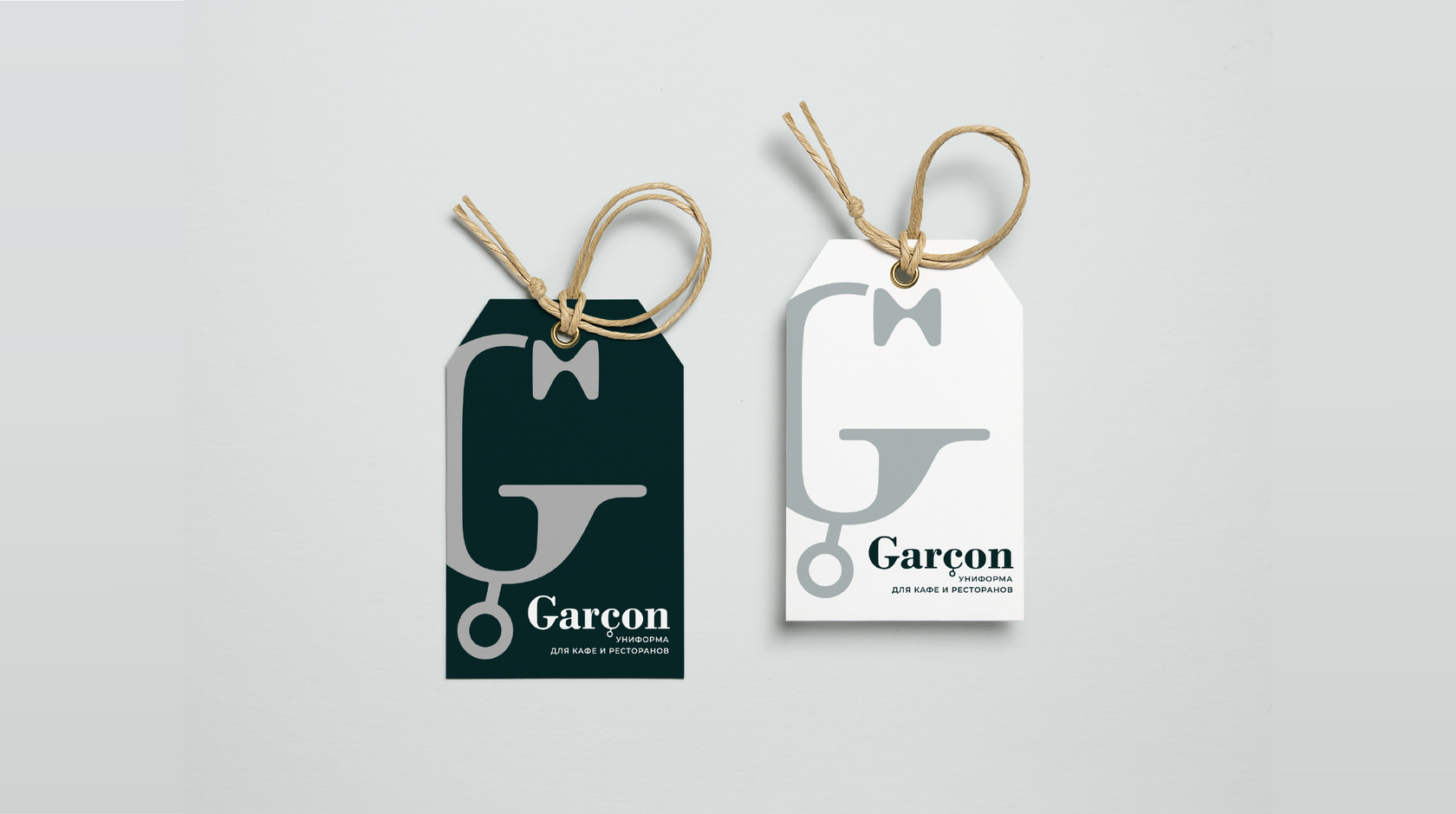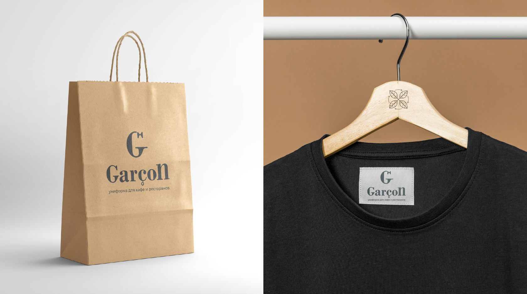 Так как слово «гарсон» имеет французское происхождение, то в шрифтовой части логотипа, в диакретическом знаке «Ç» седиль графически изображен в виде колечка — отличительной детали фартуков бренда. Это поддерживает идею собственного производства и индивидуального подхода к каждому клиенту.
